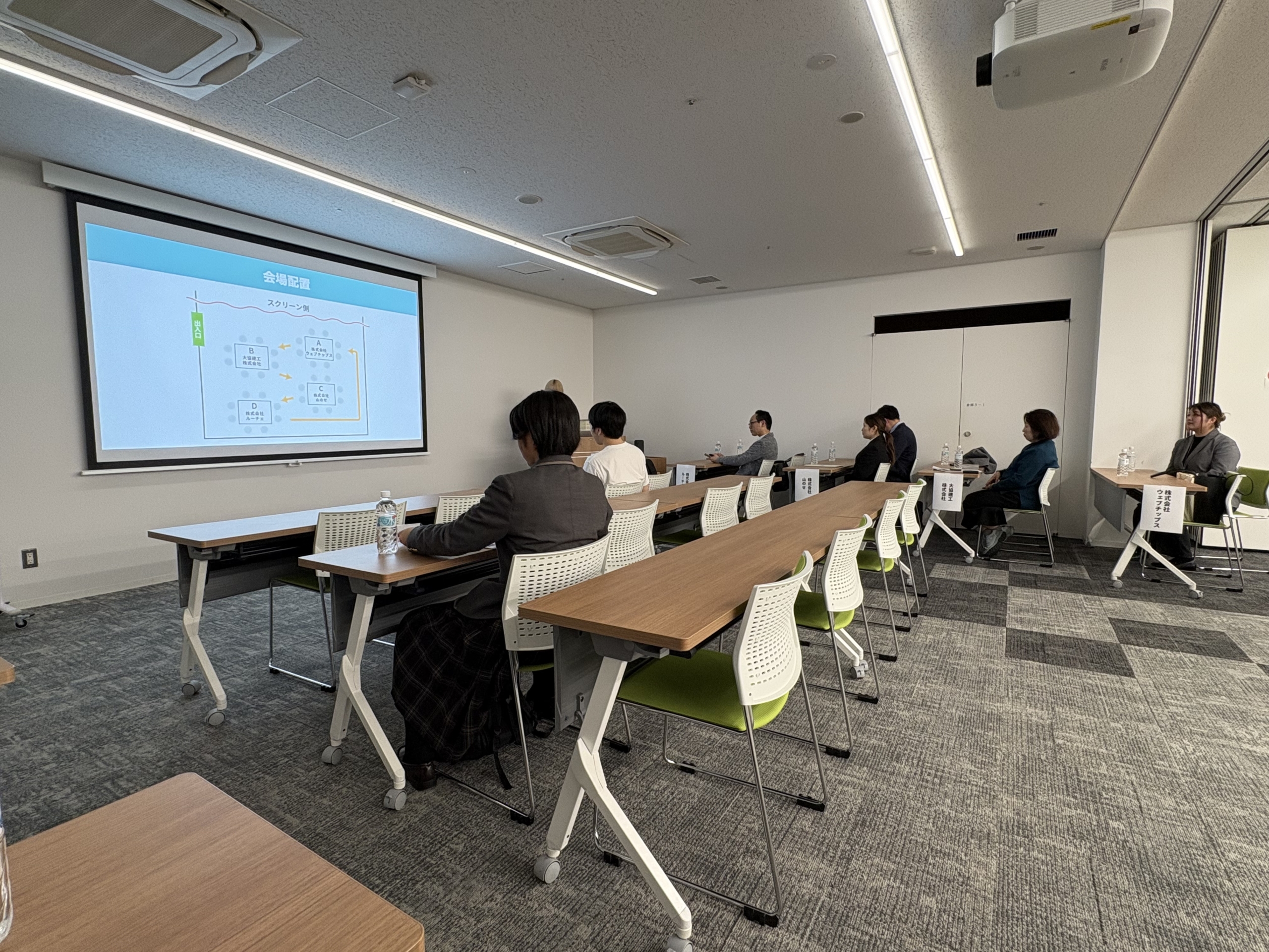 当日は、まず各企業が数分間のプレゼンテーションを行い、その後、少人数のグループに分かれてローテーション形式で対話を行う構成でした。プレゼンテーションの時間自体は短いものの、その後の対面でのコミュニケーションは非常に密度が高く、じっくりと話を伺うことができました。また、各テーブルには質問例が書かれたカードが用意されており、会話が途切れないよう工夫されていた点も印象的でした。イベント全体として、参加者と企業双方にとって価値のある設計がなされていると感じました。