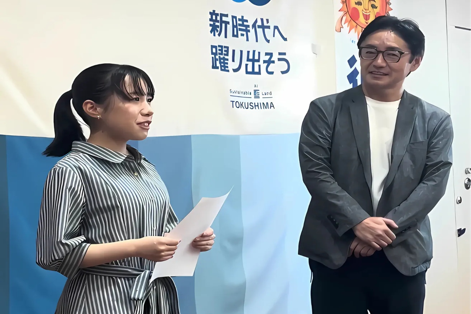 受け取ったアンバサダーは「徳島の魅力を発信して、より良い未来をつくりたい」と力強く宣言。