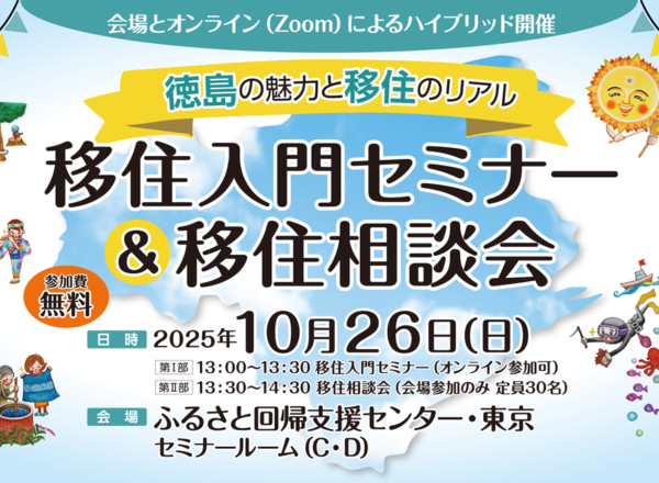 【東京】10/26(日)開催!徳島の魅力と移住のリアル〜移住入門セミナー&移住相談会〜