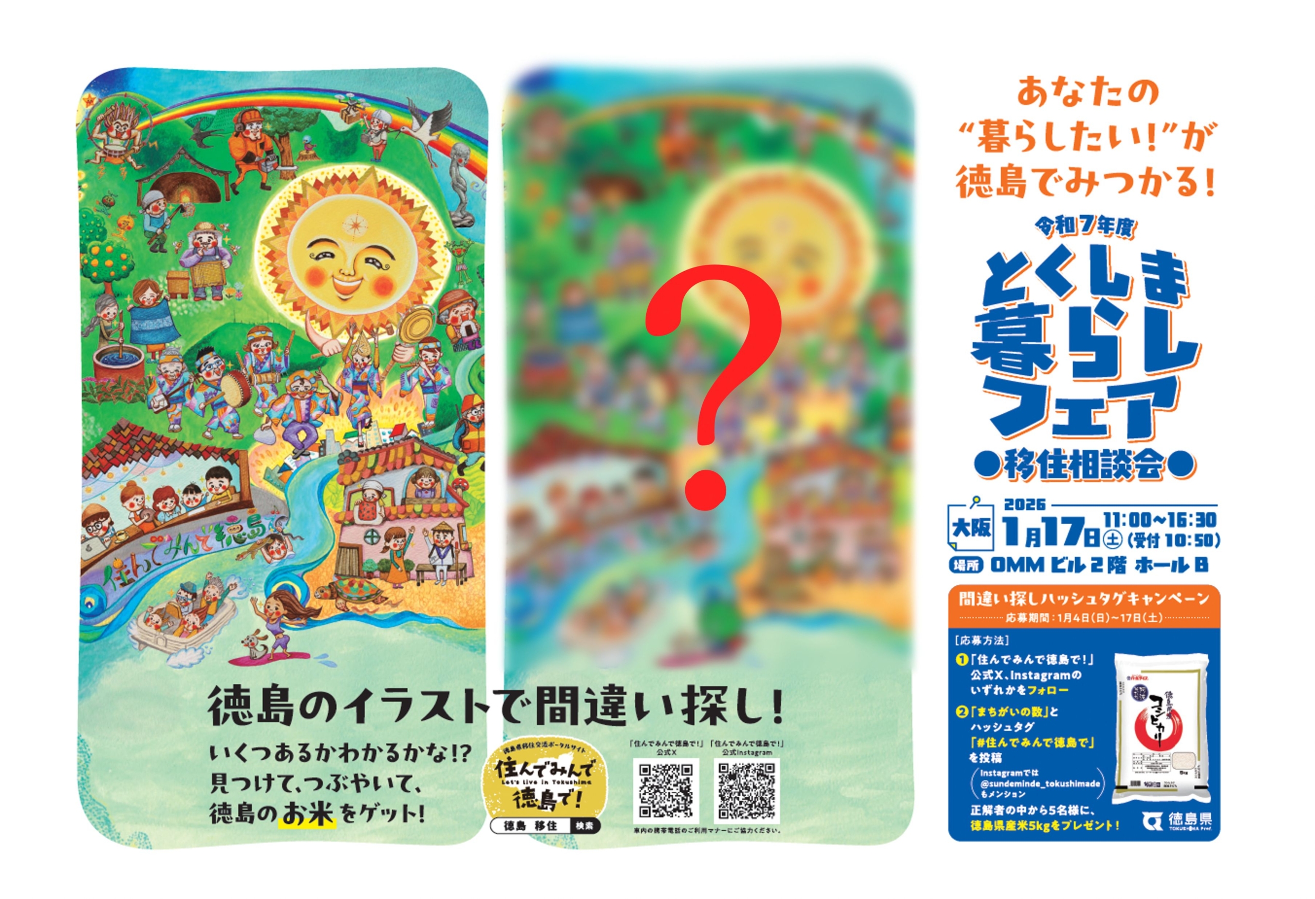 その広告の中で、県移住SNSと連動した「間違い探しによる徳島県産米5kgプレゼント」を開催中です。