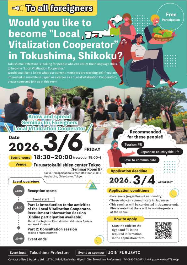 徳島県では、外国人の方向けの「外国人地域おこし協力隊」を募集しています。