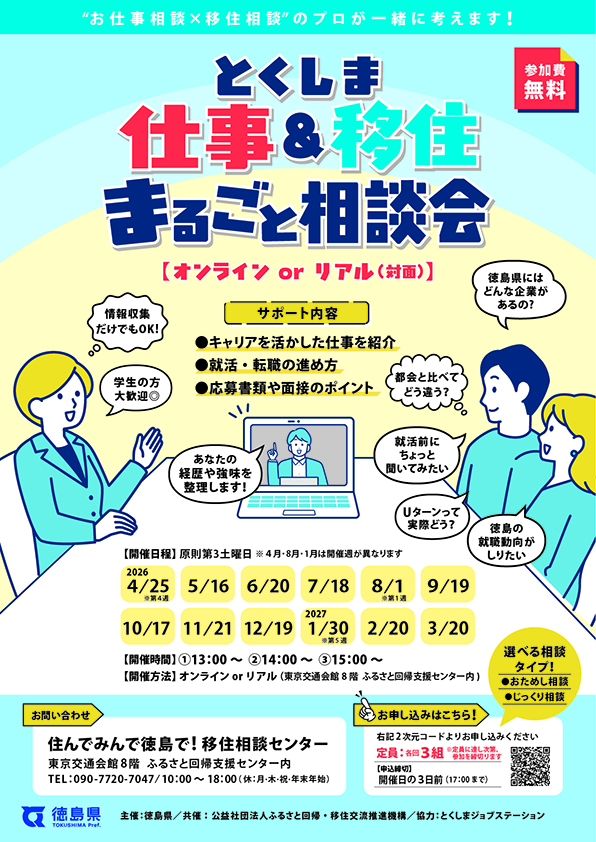 徳島への「仕事」と「移住」の相談会を開催します。
