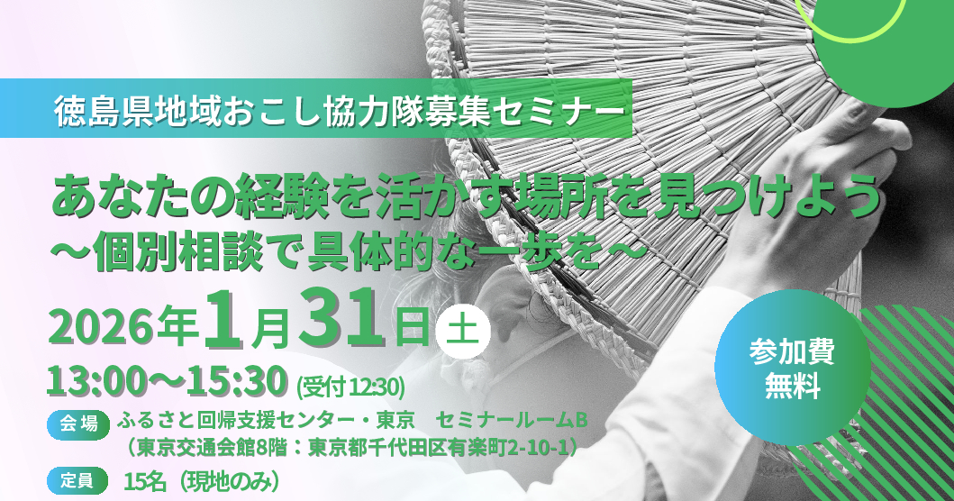 【1/31(土)東京】徳島県地域おこし協力隊募集セミナー開催!