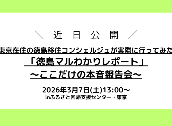【近日公開】東京在住の徳島移住コンシェルジュが実際に行ってみた「徳島マルわかりレポート」 〜ここだけの本音報告会〜